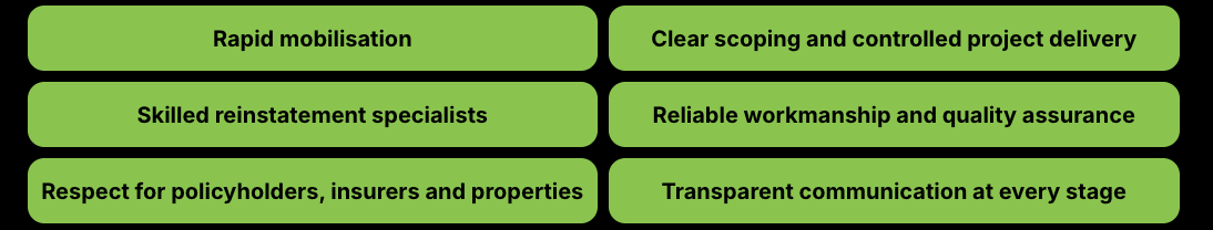 We don’t just repair properties — we oversee the entire reinstatement journey.